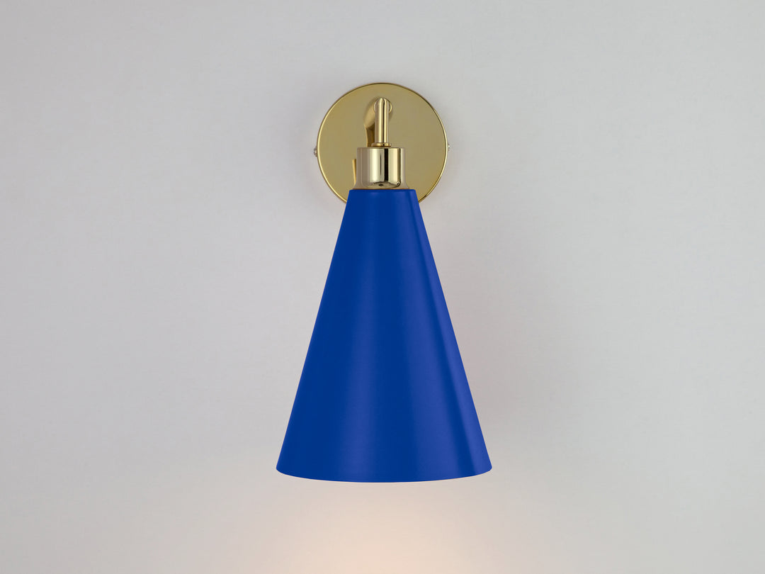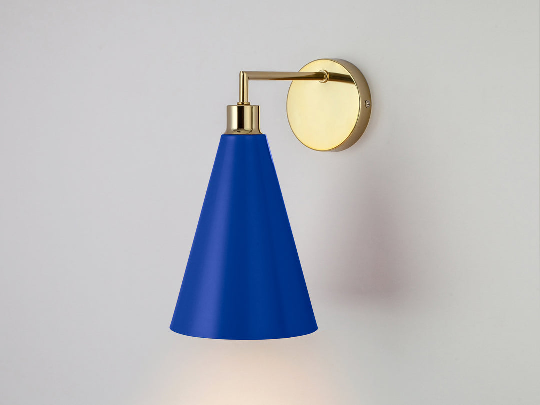 Blue cone shade wall light