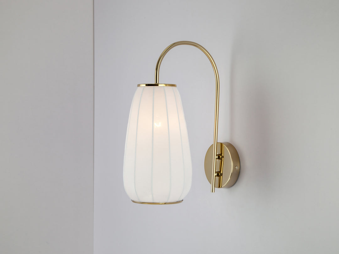 Soak your living spaces in ambient lighting with our white soft fabric wall light. This delicate fixture is defined by a white fabric shade, stretched over a brass metal frame. A soft glow of light hums gently through this fabric from our signature opal glass shades, spreading calm over your living spaces. Style our white soft fabric wall light in your bedrooms or dressing rooms for a stunning effect.