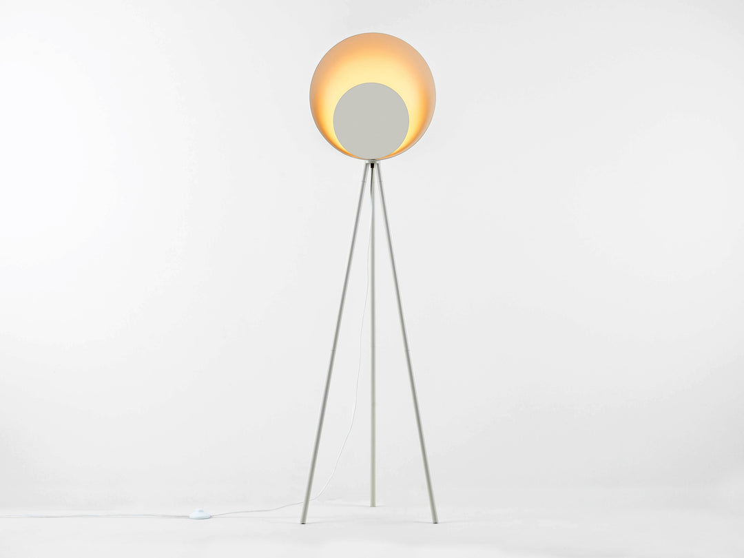 This statement floor lamp is the definitive houseof icon. The tripod base suspends an oversized dome head, which diffuses a warm illuminating glow. Ideal for a living space or bedroom.